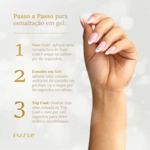 O Top Coat Fazz Up é um selante para esmaltação em gel que precisa de secagem na cabine LED/UV. Com brilho garantido para elevar qualquer visual, pode durar até 4 semanas!
